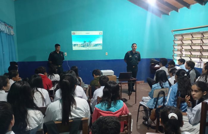 La charla fue dirigida a los alumnos de dicha Instituci贸n y estuvo a cargo de personales del LICEMIL, quienes exhortaron a los alumnos a recordar y reconocer las fechas que marcaron historia para nuestro pa铆s, as铆 como la importancia de las Fuerzas Armadas y el rol que cumple dentro del Estado Paraguayo.
